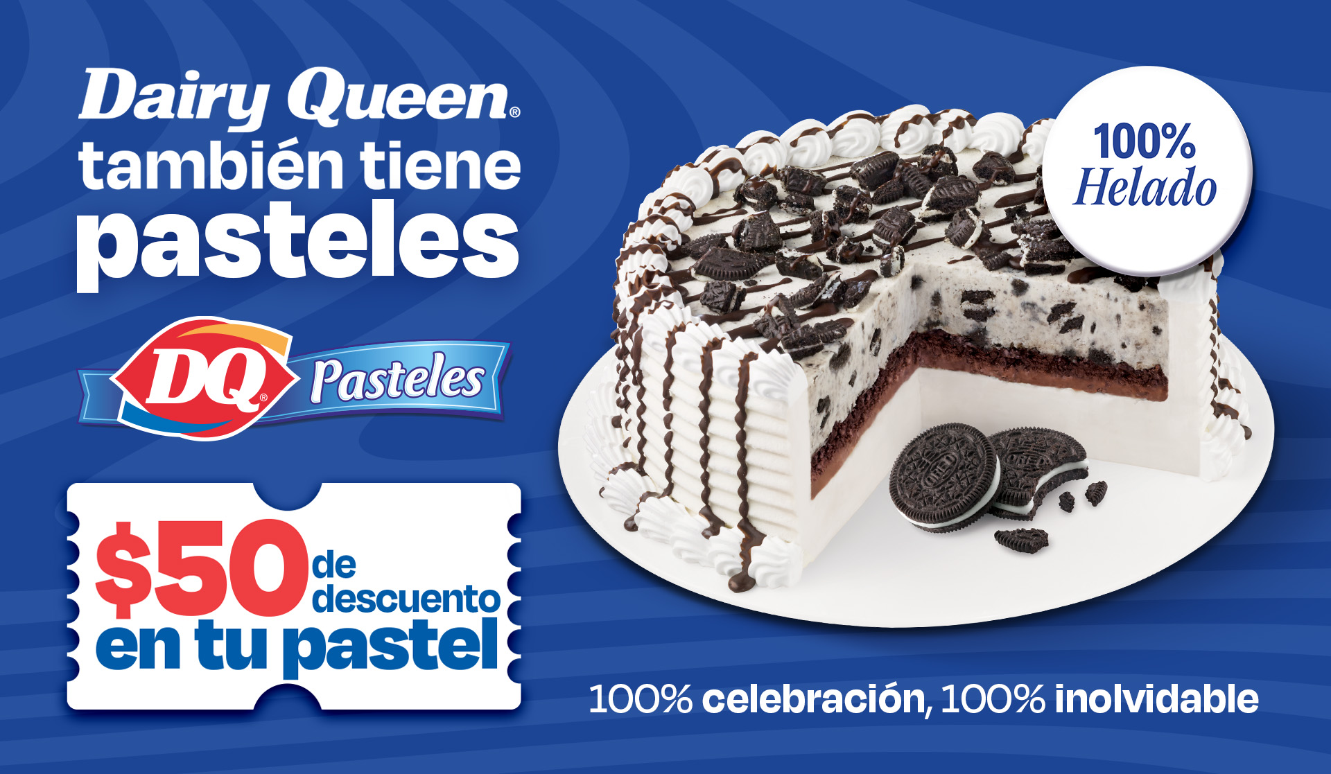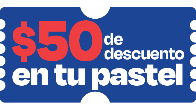 Solo menciona “Pastel 50” en caja en sucursales participantes y recibe $50 de descuento en tu pastel.